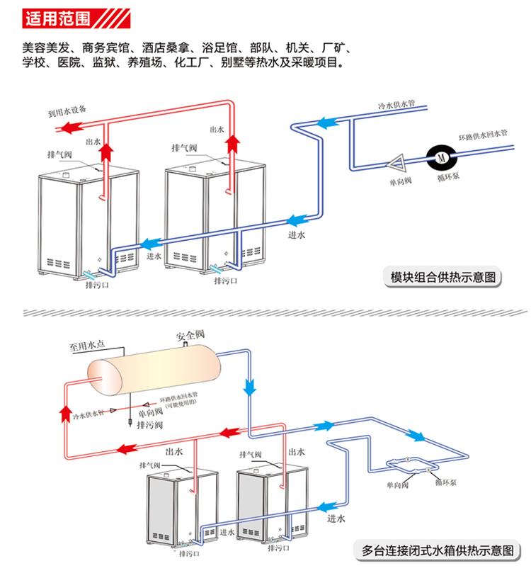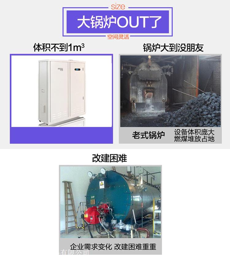 多个背靠背模块组成加热系统。每个系统都可以“并行”安装,并且单个单元的体积很小;不必预留提升孔,节省锅炉房空间。