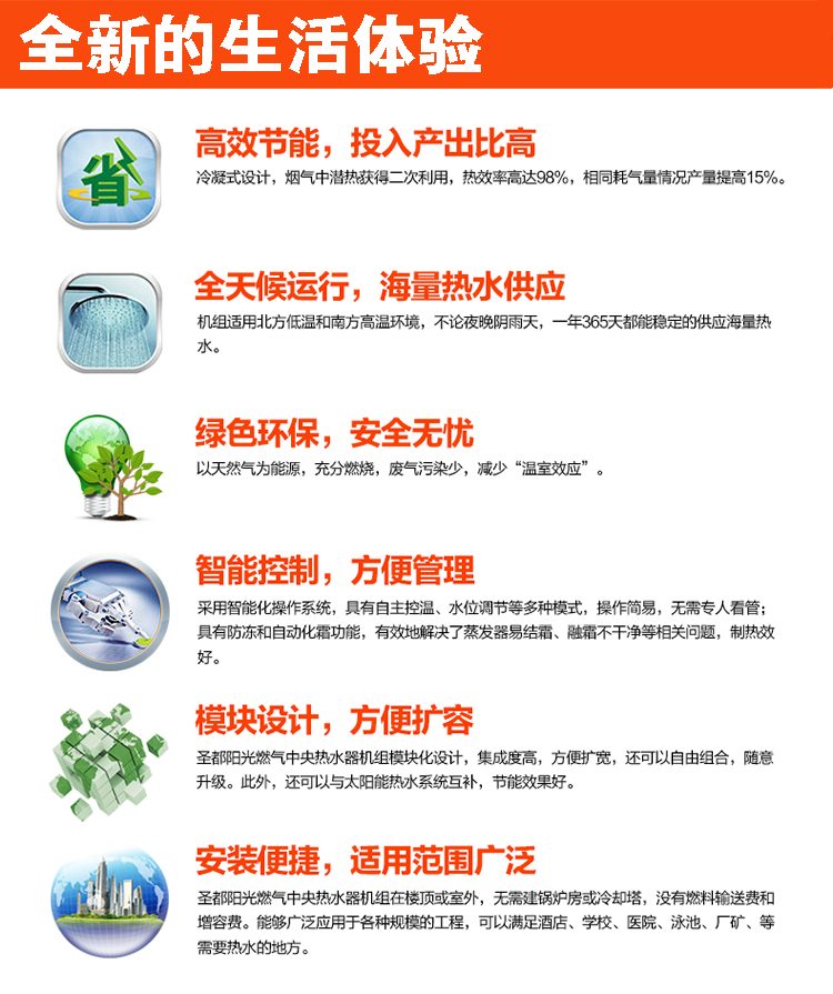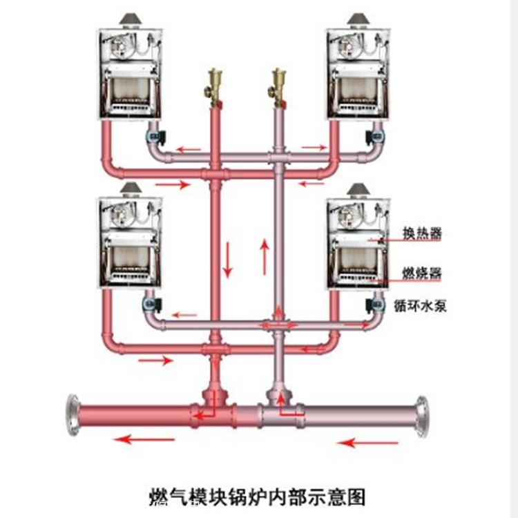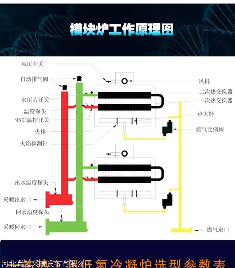 冷凝模块炉系统具备分级启动功能,可根据系统设定的温度自动调节模块的启动/停止,同时控制系统自动平衡每组模块的工作时间延长系统的总体使用寿命。