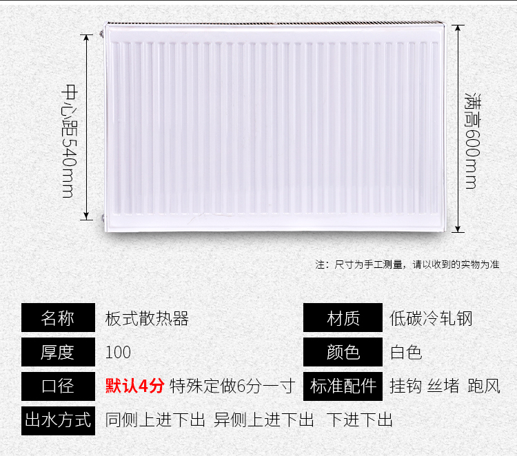 3.钢板散热器的形状小,大小小,重量轻。整体厚度不到传统散热器的1/2,重量仅为相同散热能力的生铁散热器的1/3。它占用的室内空间更少,并且与墙壁相比之下。附着力强,安全性能高。